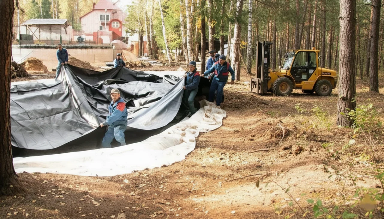 Монтаж пленки для гидроизоляции водоёма — ответственный процесс, требующий соблюдения ряда технических требований. Во-первых, необходимо подготовить основание, удалив мусор, острые предметы и выровняв поверхность. Далее наносится защитный слой, предотвращающий контакт грунта с пленкой. После подготовки основы можно приступать к монтажу выбранного материала.